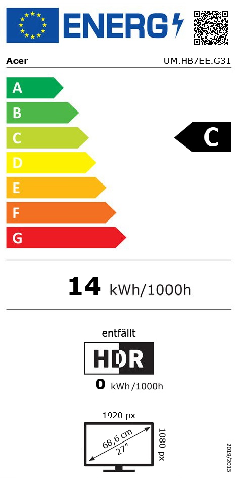 27" (68,58cm) Acer Vero B7 B277UGbmiiqprzx schwarz 2560x1440 1xDisplayPort 1.4 / 2xHDMI 2.0