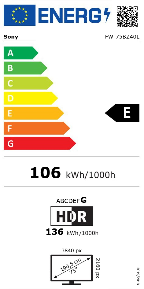75" (190,50cm) Sony Professional FW-75BZ40L schwarz 3840x2160 1xComposite / 4x HDMI 2.0