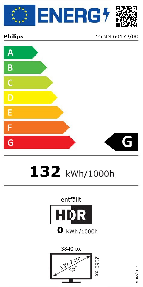 55" (139,70cm) Philips P-Line 55BDL6017P schwarz 3840x2160 1x DisplayPort 1.2 / 1xDP / 3xHDMI 2.0