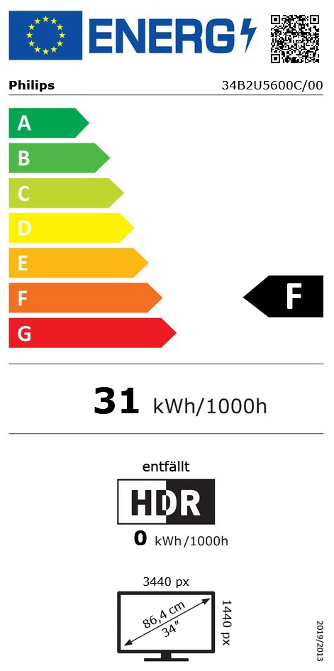 34" (86,36cm) Philips 5000er Serie 34B2U5600C schwarz 3440x1440 1xDisplayPort 1.4 / 2xHDMI 2.0