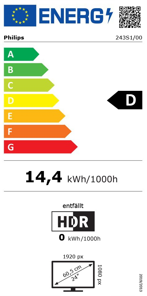 23,8" (60,47cm) Philips S-Line 243S7EHMB/00 schwarz 1920x1080 1xHDMI 1.4 / 1xVGA
