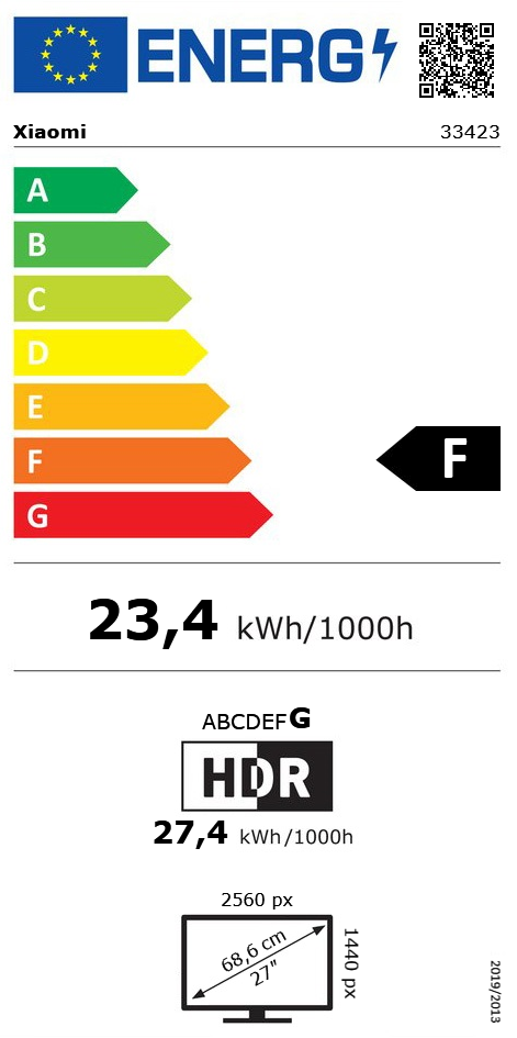 27" (68,58cm) Xiaomi Mi 2K Gaming Monitor BHR5039GL schwarz 2560x1440 1xDisplayPort 1.4 / 2xHDMI 2.0