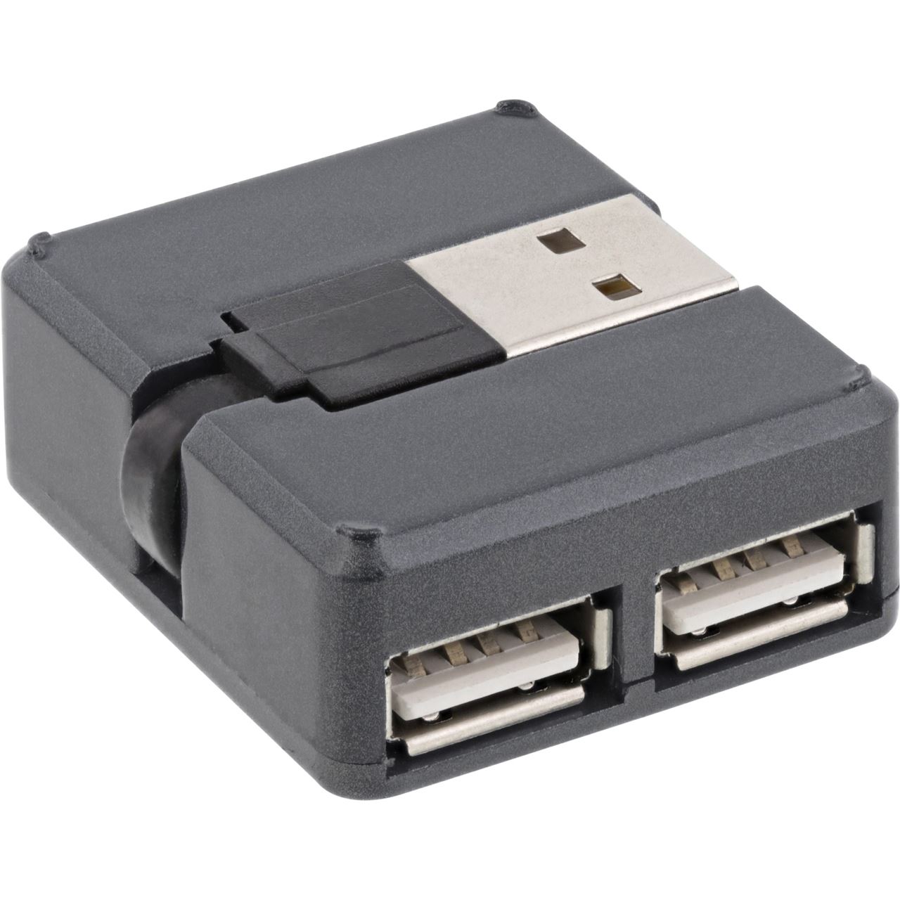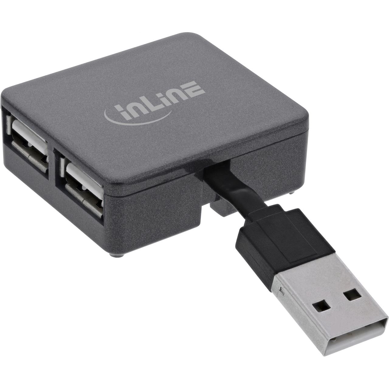 0.04m InLine USB 2.0 Hub, 4 Port, Quadrat, Kabel , Kunststoff