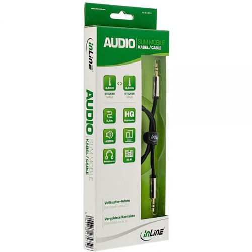 Slim Audio Kabel, extra dünn und flexibelKlinke 3,5mm Stecker beidseitigvergoldete KontakteStereo Belegung, 3-poligFarbe: Schwarz mit vernickelten Metallsteckern