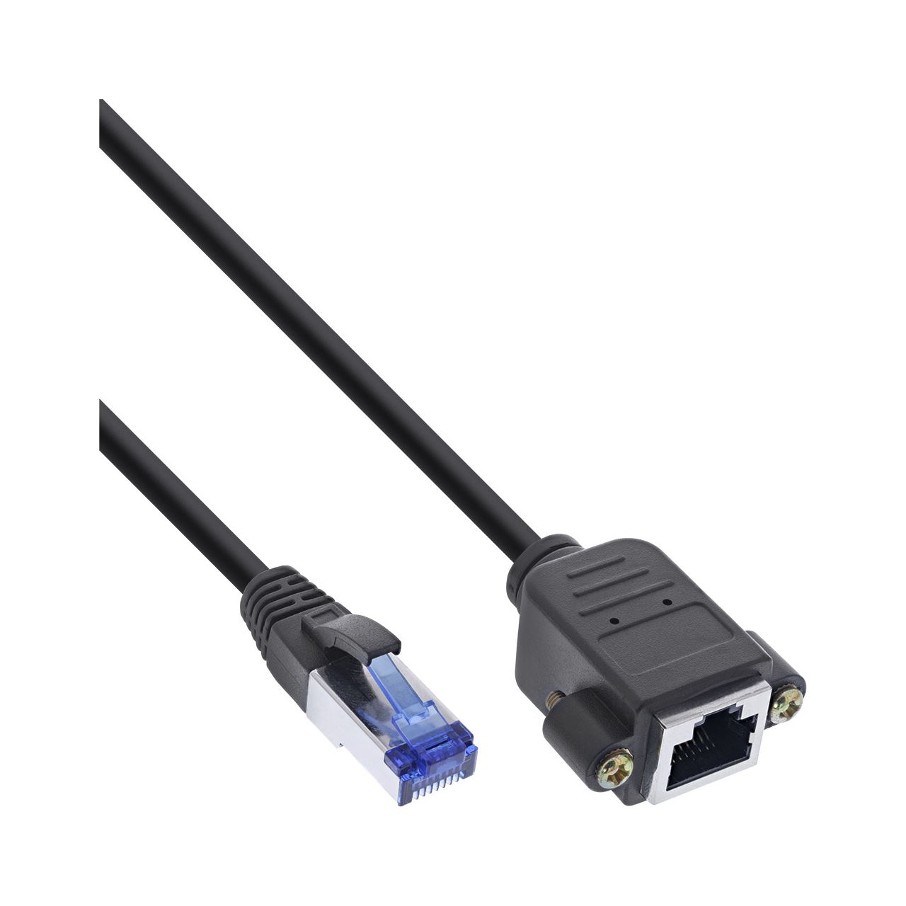 Cat.6A S/FTP Patchkabel-Verlängerung mit einseitiger Einbau-Buchse, zur Montage and Frontplatten.Farbe: schwarzSeite A: RJ45 SteckerSeite B: RJ45 Einbau-BuchseSchirmung: S/FTP (PiMf)Typ: Cat.6ASignal: NetzwerkQuerschnitt: AWG 27Variante: 1:1 belegtDatenübertragungsrate: bis 10 Gb/sLeitermaterial: KupferMantel: halogenfrei (LSZH)