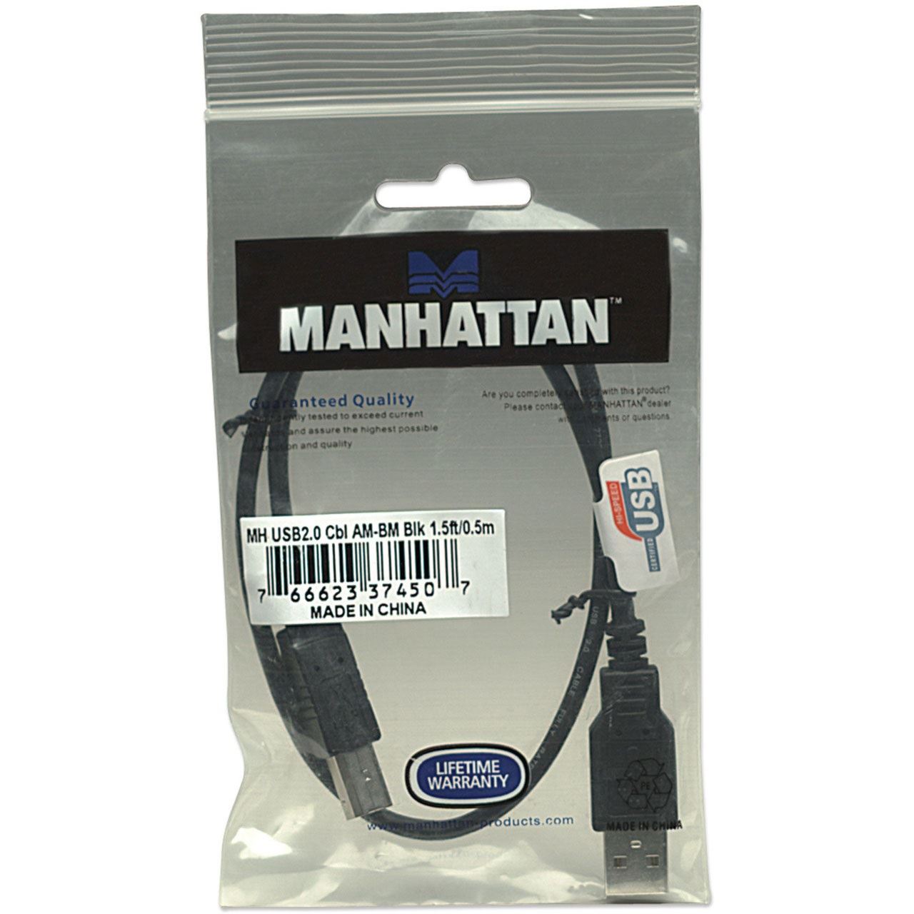 (€7,80*/1m) 0.50m Manhattan USB2.0 Anschlusskabel USB A Stecker auf USB B Stecker Schwarz geschirmt / vergoldete Stecker