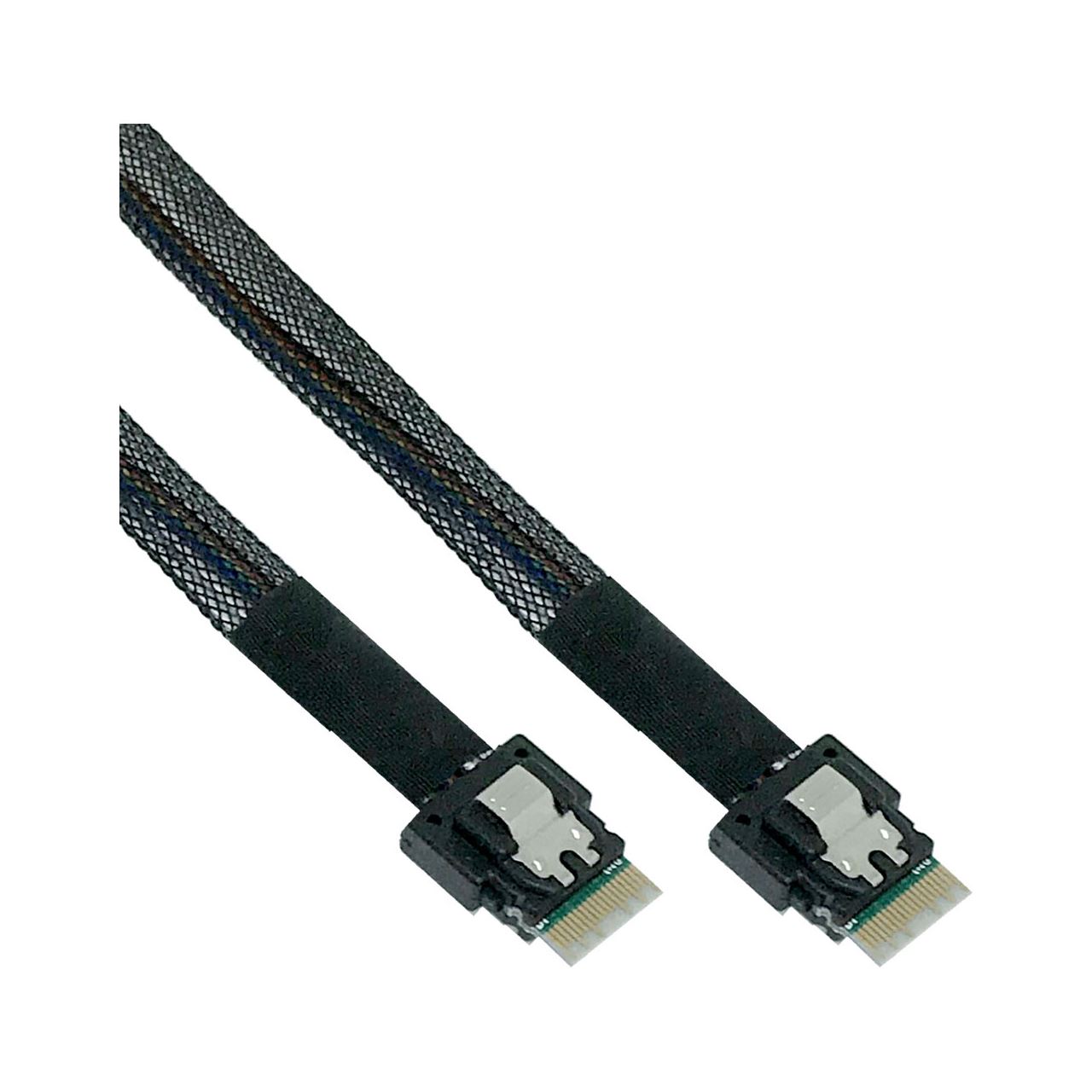 InLine® Slim SAS Kabel zum Verbinden von (internen) SAS Geräten wie z. B. Festplatten an den Controller (HBA-Karten, RAID-Controller, JBOD, DAS, SANS)Slim SAS 4i Stecker SFF-8654 an Slim SAS 4i Stecker SFF-8654Stecker mit Verriegelungs-ClipKonform zu den SAS 4.0 SFF-8654 SpezifikationenFür Datenübertragung bis 24Gb/s pro Kanal geeignet