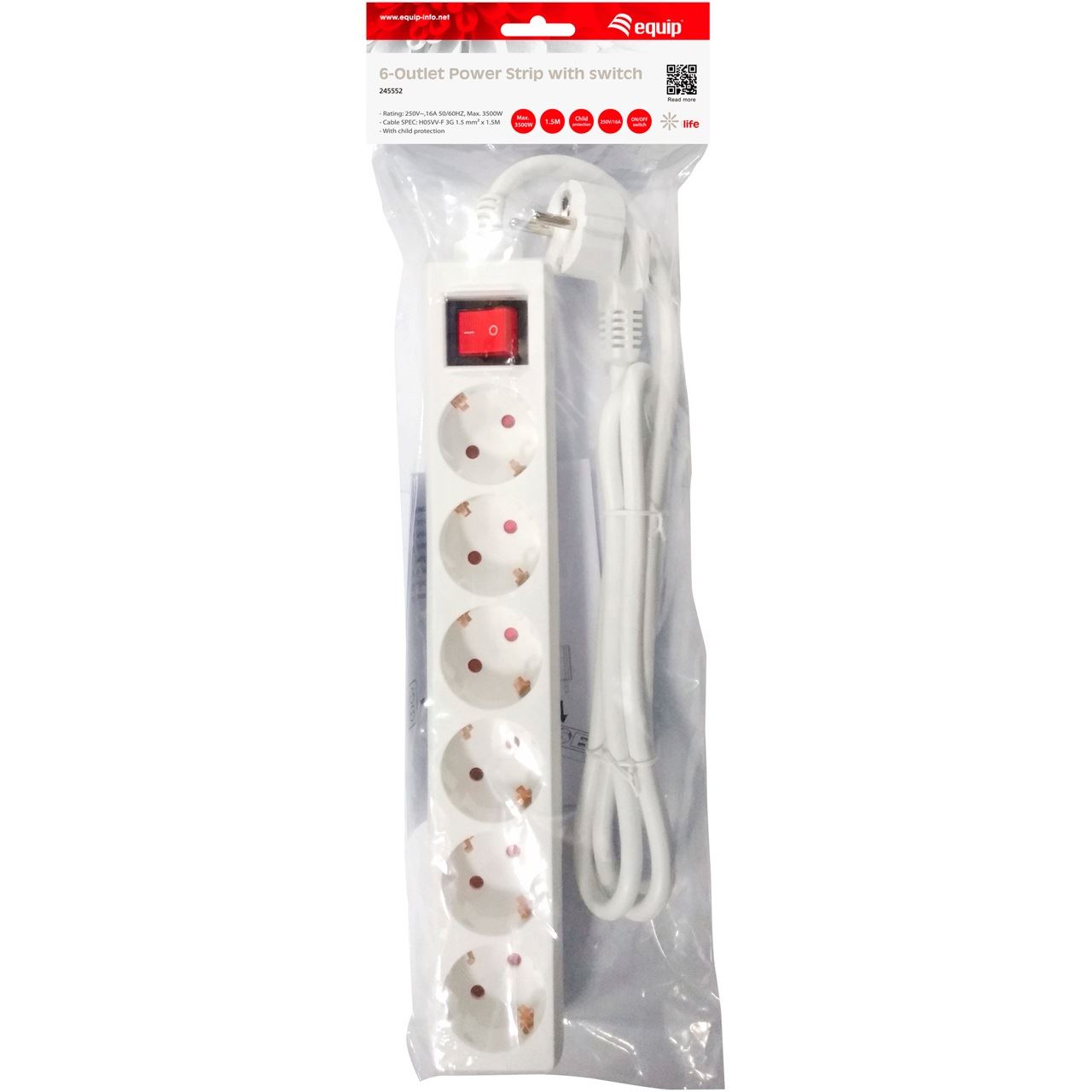 Der equip 6-Socket Power Strip verfügt über 6 Standard-Steckdosen, passt zu den meisten Ihrer Stromversorgungen und bietet eine sichere Stromversorgung.