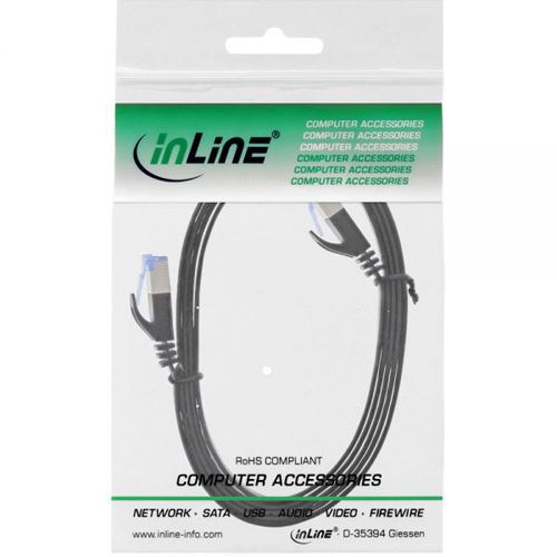Flaches PatchkabelU/FTP Geschirmt: Paarweise in Metallfolie (PiMf)erfüllt die Cat.6A anforderungen bis 500MHzVier Aderpaare, verdrilltVollkupferlitzen1:1 Belegung, farbcodiert nach EIA/TIA-568B2x RJ45 Stecker, vergossen, mit Rastnasenschutzblau eingefärbter Stecker zur UnterscheidungPVC Mantel, extra flachflexibel und einfach zu verlegenin wiederverschließbarer PE-Tüte mit EAN Code