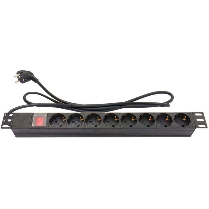 19" Steckdosenleiste von Good Connections mit acht Schutzkontakt-Anschlüssen zum Einbau in 19" Netzwerk-, Server- oder Wandschränke und als Wandmontage.