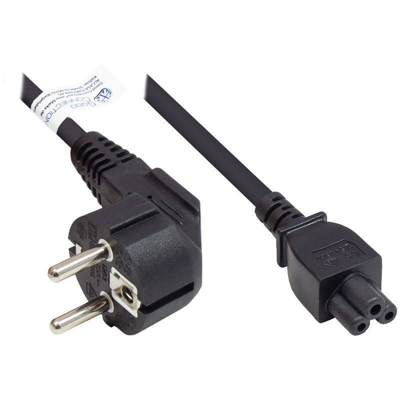(€4,39*/1m) 1.80m Good Connections Strom Anschlusskabel Schutzkontakt Stecker gewinkelt auf C5 Buchse Schwarz PVC