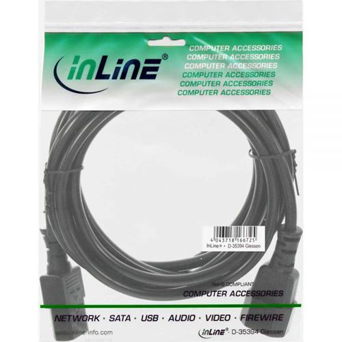 InLine® Kaltgeräteverlängerung, C13 auf C14, 1,8m (mit ETL - Zulassung für Nordamerika)Farbe: SchwarzLänge 1,8m