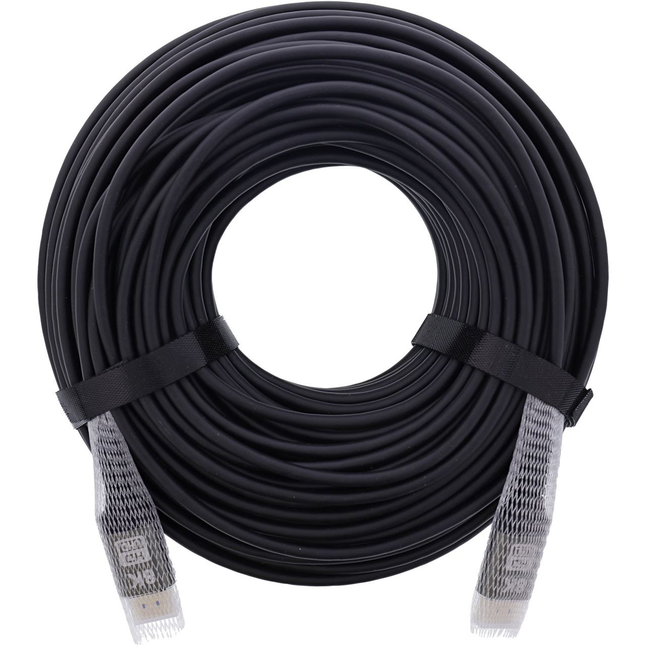 Hohe Übertragungsqualität über lange Distanzen:Hybridkabel-Technologie kombiniert Glasfaser und Kupfer für verlustfreie 8K/4K-Signalübertragung bis zu 50 m.