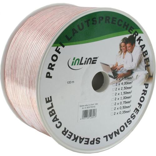 (€0,52*/1m) 100.00m InLine Audio Lautsprecherkabel ohne Stecker Transparent 2x 2,5mm² / auf Spule
