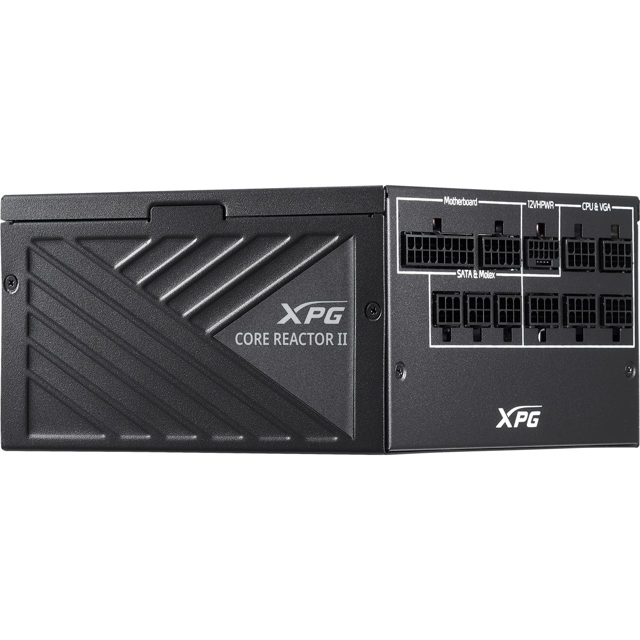 XPG COREREACTOR II 1000W Netzteil. Gesamtleistung: 1000 W, AC Eingangsspannung: 100 - 240 V, AC Eingangsfrequenz: 50/60 Hz. Motherboard Anschlussstecker: 24-pin ATX, Kabeltyp: Vollständig modular. Zweck: PC, Stromversorgungseinheit (PSU) Formfaktor: ATX, 80 Plus Zertifizierung: 80 PLUS Gold. Produktfarbe: Schwarz, Kühlung: Aktiv, Lüfterdurchmesser: 13,5 cm. Konformitätsbescheinigungen: BSMI, CB, CE, China Compulsory Certification (CCC), EAC, Eidgenössische Kommunikationskommission...