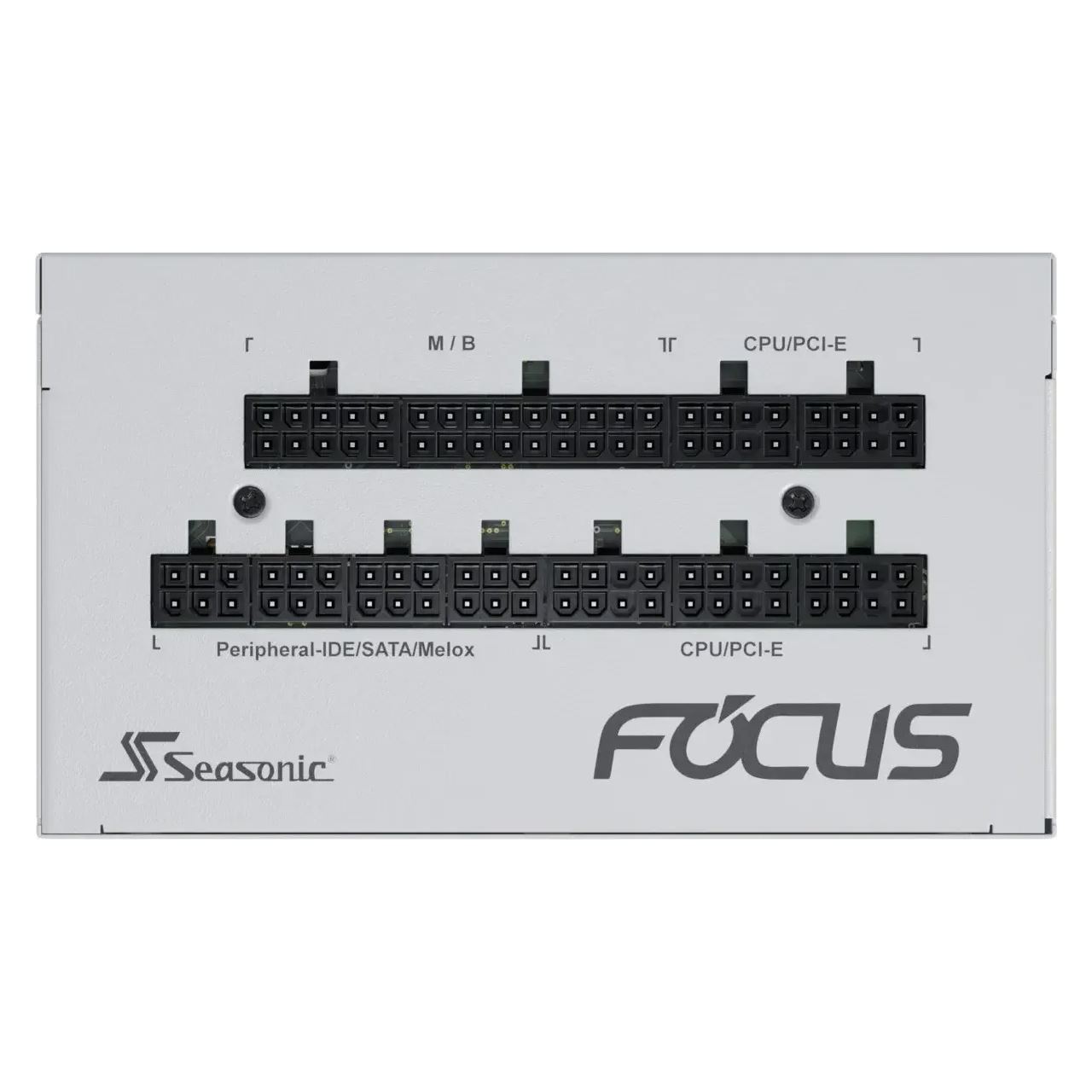 Seasonic FOCUS-GX-1000 WHITE. Gesamtleistung: 1000 W, AC Eingangsspannung: 100 - 240 V, AC Eingangsfrequenz: 50/60 Hz. Motherboard Anschlussstecker: 20+4 pin ATX, Kabeltyp: Vollständig modular. Zweck: PC, Stromversorgungseinheit (PSU) Formfaktor: ATX, 80 Plus Zertifizierung: 80 PLUS Gold. Produktfarbe: Weiß, Kühlung: Aktiv, Lüfterdurchmesser: 12 cm. Mitgelieferte Kabel: PCIe, Peripheral (Molex), SATA