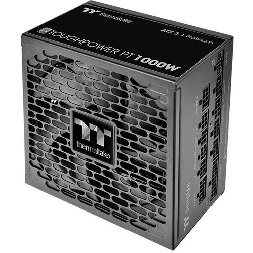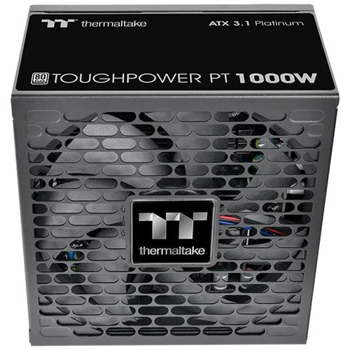 Thermaltake Toughpower PT 1000W. Gesamtleistung: 1000 W, AC Eingangsspannung: 100 - 240 V, AC Eingangsfrequenz: 47 - 63 Hz. Motherboard Anschlussstecker: 24-pin ATX, Stromkabellänge Motherboard: 55 cm, SATA-Netzkabellänge: 450,600,750 mm. Zweck: PC, Stromversorgungseinheit (PSU) Formfaktor: ATX, 80 Plus Zertifizierung: 80 PLUS Platinum. Produktfarbe: Schwarz, Kühlung: Aktiv, Lüfterdurchmesser: 13,5 cm. Sicherheit: CE/UKCA/FCC/ICES/CB/TUV/cTUVus/LVD/CCC/BSMI/ S-MARK/EAC/RCM