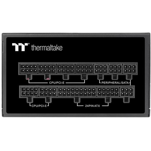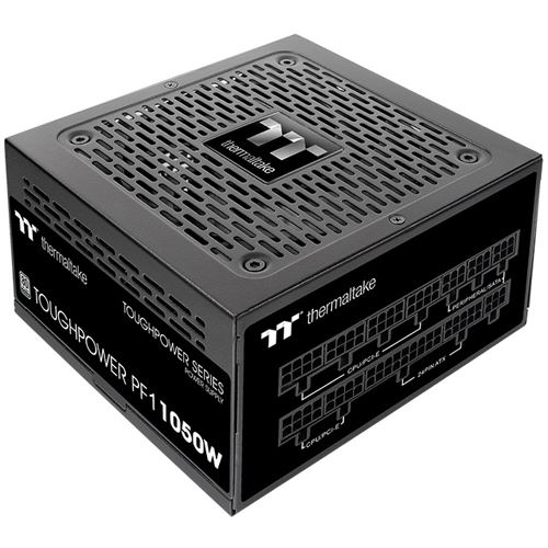 Thermaltake Toughpower PF1. Gesamtleistung: 1050 W, AC Eingangsspannung: 100 - 240 V, Spitzenstrom: 1260 W. Motherboard Anschlussstecker: 24-pin ATX, Stromkabellänge Motherboard: 60 cm, SATA-Netzkabellänge: 500,650,800,950 mm. Zweck: PC, Stromversorgungseinheit (PSU) Formfaktor: ATX, 80 Plus Zertifizierung: 80 PLUS Platinum. Produktfarbe: Schwarz, Lüfterdurchmesser: 12 cm, Anzahl Lüfter: 1 Lüfter. Zertifizierung: CE/UL/TÜV/FCC/CB