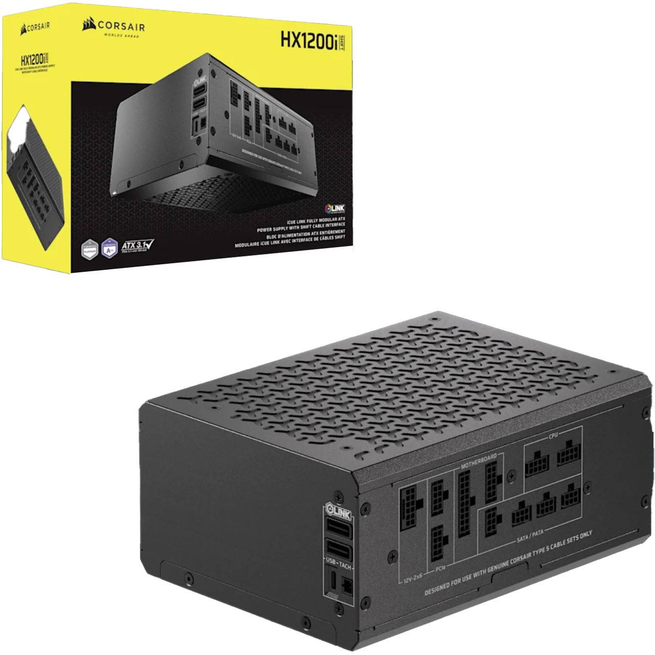 Corsair HX1200i. Gesamtleistung: 1200 W, AC Eingangsspannung: 100 - 240 V, AC Eingangsfrequenz: 47 - 63 Hz. Motherboard Anschlussstecker: 24-pin ATX, Stromkabellänge Motherboard: 61 cm, SATA-Netzkabellänge: 445 mm. Zweck: PC, Stromversorgungseinheit (PSU) Formfaktor: ATX, 80 Plus Zertifizierung: 80 PLUS Platinum. Produktfarbe: Schwarz, Kühlung: Aktiv, Lüfterdurchmesser: 14 cm. Breite: 200 mm, Tiefe: 150 mm, Höhe: 86 mm