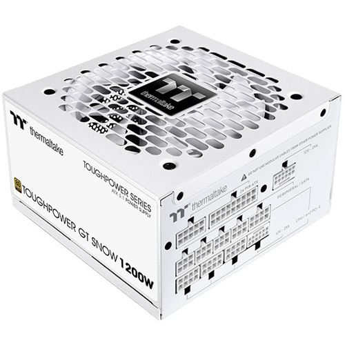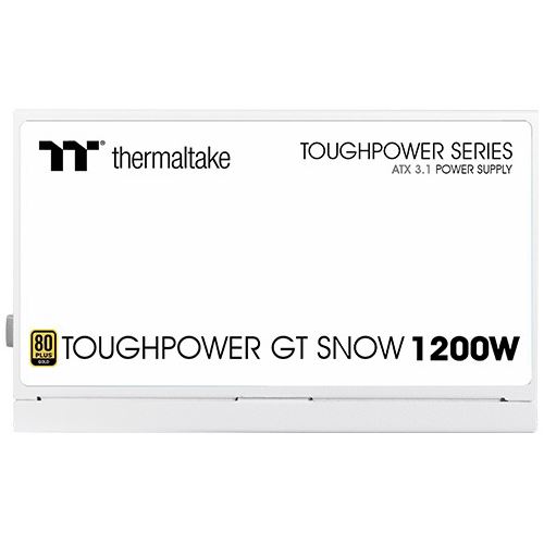 Thermaltake Toughpower GT Snow 1200W. Gesamtleistung: 1200 W, AC Eingangsspannung: 100 - 240 V, AC Eingangsfrequenz: 50/60 Hz. Motherboard Anschlussstecker: 24-pin ATX, Stromkabellänge Motherboard: 55 cm, SATA-Netzkabellänge: 150,450 mm. Zweck: PC, Stromversorgungseinheit (PSU) Formfaktor: ATX, 80 Plus Zertifizierung: 80 PLUS Gold. Produktfarbe: Weiß, Kühlung: Aktiv, Lüfterdurchmesser: 12 cm. Konformitätsbescheinigungen: BIS, BSMI, CB, CCC, CE, EAC, Eidgenössische Kommunikationskommission (FCC), ICES,...