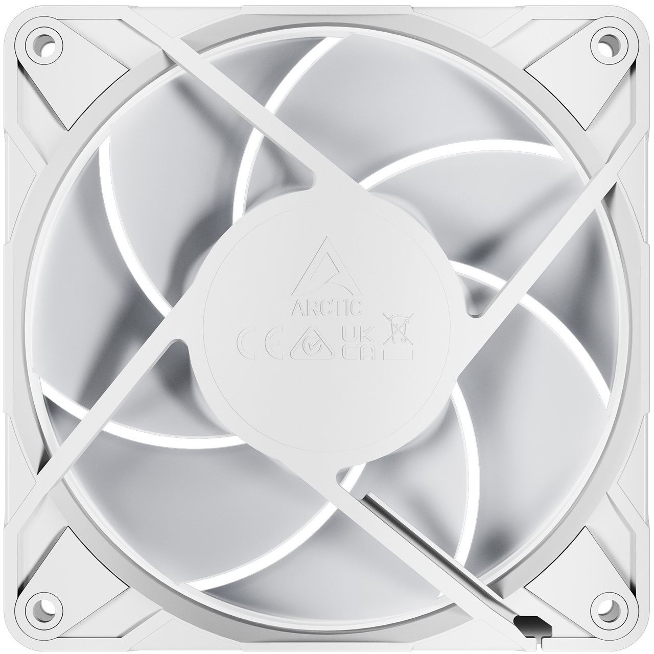 ARCTIC Freezer P12 Pro A-RGB (White) - 3 Pack 120 mm A-RGB PWM-Lüfter mit Kabelsplitter. Typ: Ventilator, Lüfterdurchmesser: 12 cm, Luftstrom: 131 m³/h, Lagertyp: Fluiddynamisches Lager (FDB). Produktfarbe: Weiß