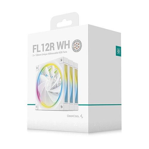 DeepCool FL12R WH-3 IN 1. Typ: Ventilator, Lüfterdurchmesser: 12 cm, Rotationsgeschwindigkeit (min.): 500 RPM, Rotationsgeschwindigkeit (max.): 2150 RPM, Luftstrom: 93,45 m³/h, Maximum Luftdruck: 2,59 mmH2O, Lagertyp: Fluiddynamisches Lager (FDB). Produktfarbe: Weiß
