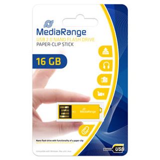MediaRange USB Nano-Speicherstick, mit Büroklammer-Funktion, gelb, 16GB