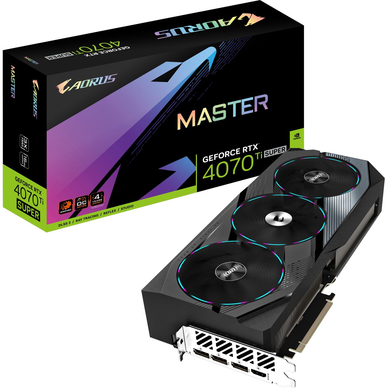 Das Design der Grafikkarte ist ebenso beeindruckend wie ihre Leistung. Mit einer ansprechenden Ästhetik, RGB-Beleuchtung und einem auffälligen Erscheinungsbild wird die AORUS GeForce RTX™ 4070 Ti SUPER MASTER 16G zu einem wahren Blickfang in jedem Gaming-Setup. Sie verleiht Ihrem PC eine einzigartige Note und lässt ihn aus der Masse hervorstechen.