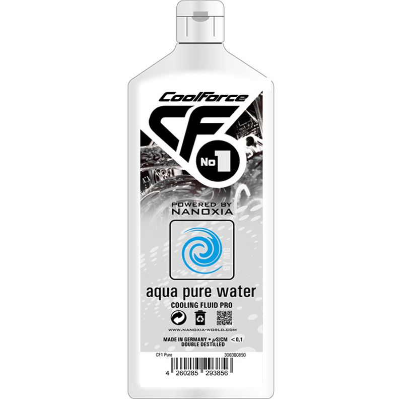 CF1 Aqua Pure Water dient als Grundlage für Ihr Wasserkühlungssystem. Das doppelt destillierte Wasser leitet nicht und ist frei von Farbstoffen. Wichtig: Dem CF1 Aqua Pure Water ist kein Korrosionsschutz beigemischt. Die Destillation des CF1 Aqua Pure Water erfolgt durch zwei unterschiedliche Filtersysteme. Nach Durchlauf einer Umkehrosmose-Anlage passiert die Flüssigkeit ein nachgeschaltetes de-ionisiertes System. Der PH-Wert liegt mit 2 bis 3 im sauren Bereich. Das absolut keim- und ionenfreie Liquid verhindert ein Wachstum von Bakterien, Algen und Mikroorganismen in Ihrem System. Alle Kühlmittel unterliegen einer sich monatlich wiederholenden Qualitätskontrolle im Rahmen derer sie auf Ihre Konsistenz geprüft und diversen Langzeit-Tests unterzogen werden.