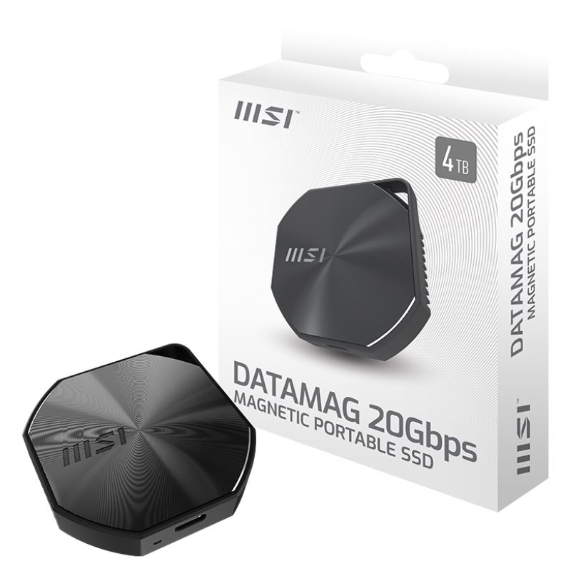MSI DATAMAG 20GBPS 1TB. SSD Speicherkapazität: 1 TB. USB-Anschlusstyp: USB Typ-C, USB-Version: USB 3.2 Gen 2x2. Lesegeschwindigkeit: 1600 MB/s, Schreibgeschwindigkeit: 1500 MB/s. Datenübertragungsrate: 20 Gbit/s. Produktfarbe: Schwarz