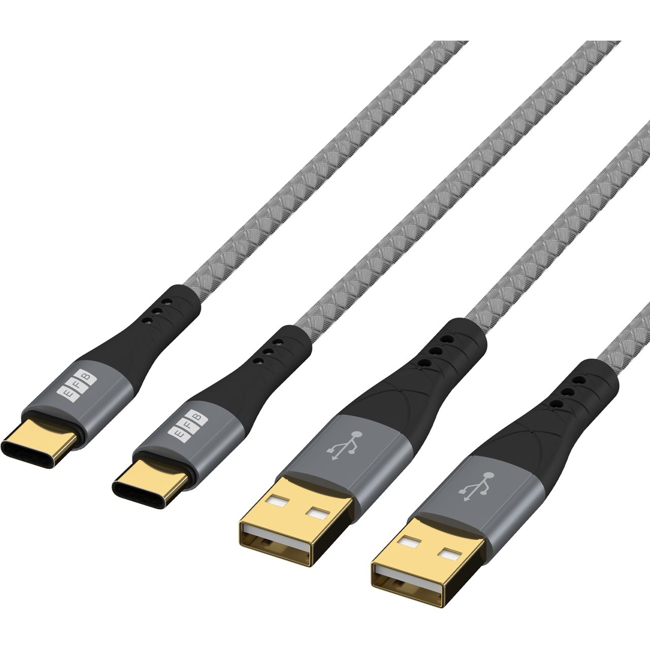 USB-A auf USB Typ-C Ladekabelset – 60W, Textilmantel, je 2 x 2m