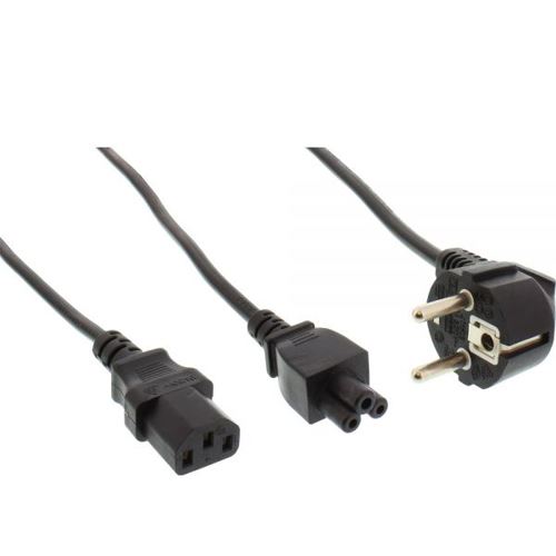 Dieses Netz-Y-Kabel dient dazu, ein Notebook (-Netzteil) und einen Monitor (oder Drucker etc.) an nur einer Stromsteckdose zu betreiben.Schutzkontaktstecker CEE7/7 gewinkelt auf 1x Notebookstecker IEC-C5 und 1x Kaltgerätestecker IEC-C13Kabellängen: CEE7/7 1m, IEC-C5 0,5m, IEC-C13 1mFarbe schwarz