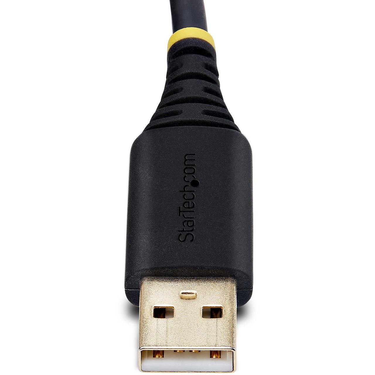Der 2 Meter (6,6 Fuß) lange Null Modem USB Serial Adapter erweitert einen Desktop oder Laptop um einen seriellen RS-232 DB/DE-9 (weiblich) Anschluss über einen USB Typ-A Port. Befestigen Sie den Adapter mit den vorinstallierten und abnehmbaren geschlitzten D-Sub-Rändelschrauben an einem seriellen Gerät oder installieren Sie die mitgelieferten DB-9-Muttern für die Kompatibilität mit anderen seriellen Peripheriegeräten oder Kabeln.