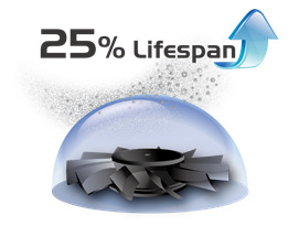 Der ASUS Dust-Proof Fan ist ein Lüfter, dessen Motor im Gehäuseinneren optimal vor Staub geschützt ist. Auf diese Weise bilden sich im Laufe der Zeit keine Staubablagerungen, welche die Leistungsfähigkeit des Lüfters beeinträchtigen könnten. Somit erhöht sich die Lebensdauer der Grafikkarte um bis zu 25%*.