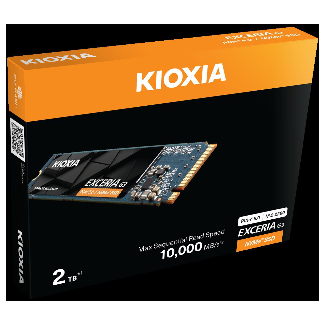 Kioxia Exceria G3. SSD Speicherkapazität: 2 TB, SSD-Formfaktor: M.2, Lesegeschwindigkeit: 10000 MB/s, Schreibgeschwindigkeit: 9600 MB/s, Komponente für: PC/Laptop