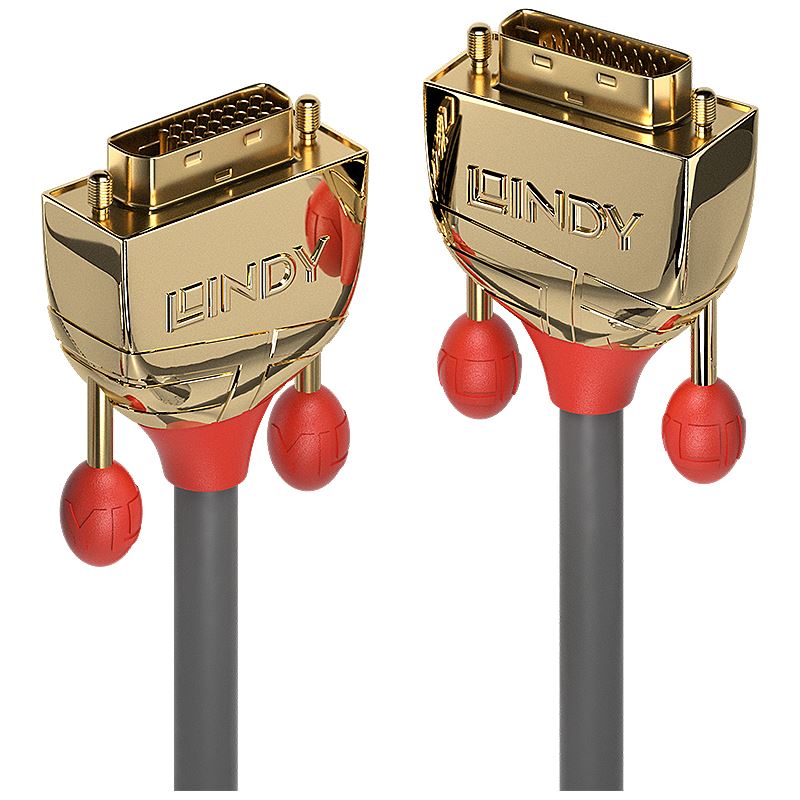 (€15,63*/1m) 3.00m Lindy DVI-D Anschlusskabel Dual Link DVI 24+1 Stecker auf DVI 24+1 Stecker Anthrazit GOLD / schraubbar