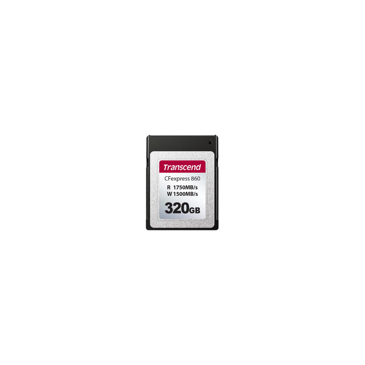 Transcend CFexpress 860. Kapazität: 320 GB, Flash Card Typ: CFexpress, Lesegeschwindigkeit: 1750 MB/s, Schreibgeschwindigkeit: 1500 MB/s. Produktfarbe: Schwarz