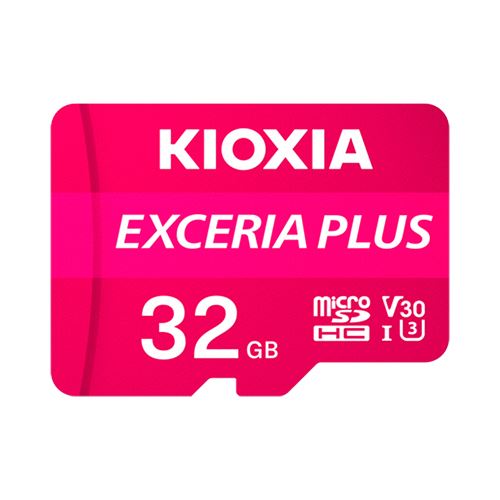 Kioxia Exceria Plus. Kapazität: 32 GB, Flash Card Typ: MicroSDHC, Flash-Memory-Klasse: Klasse 10, Interner Speichertyp: UHS-I, Lesegeschwindigkeit: 98 MB/s, Schreibgeschwindigkeit: 65 MB/s, UHS Speed Klasse: Class 3 (U3), Video-Geschwindigkeitsklasse: V30. Schutzfunktion: Schockresistent, Wasserdicht, Röntgensicher, Produktfarbe: Pink