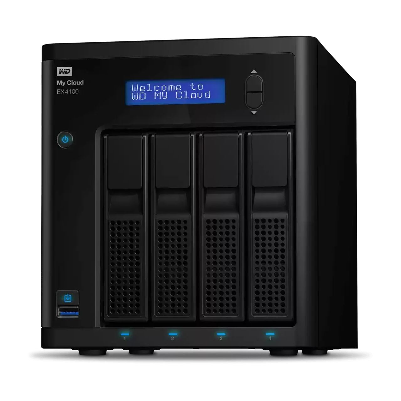 Western Digital My Cloud Pro My Cloud EX4100. Gesamte installierte Speicherkapazität: 40 TB, Typ des installierten Speicherlaufwerks: HDD, Unterstützte Speicherlaufwerke: HDD. Prozessorfamilie: Marvell, Prozessor: Armada 388, Prozessor-Taktfrequenz: 1,6 GHz. Speicherkapazität: 2 GB, Interner Speichertyp: DDR3. Ethernet LAN Datentransferraten: 10,100,1000 Mbit/s, Unterstützte Netzwerkprotokolle: IPv6, iSCSI, SSH, LLTD, UPnP, NTP, Apple Bonjour, Windows Rally. Gehäusetyp: Desktop, Kühlung: Aktiv, Produktfarbe: Schwarz