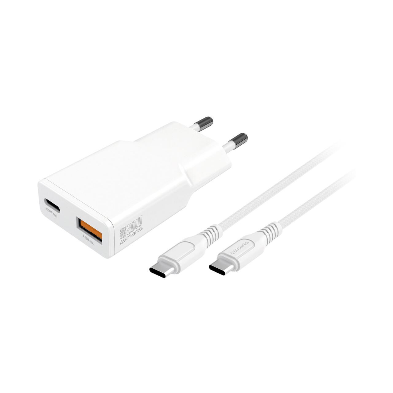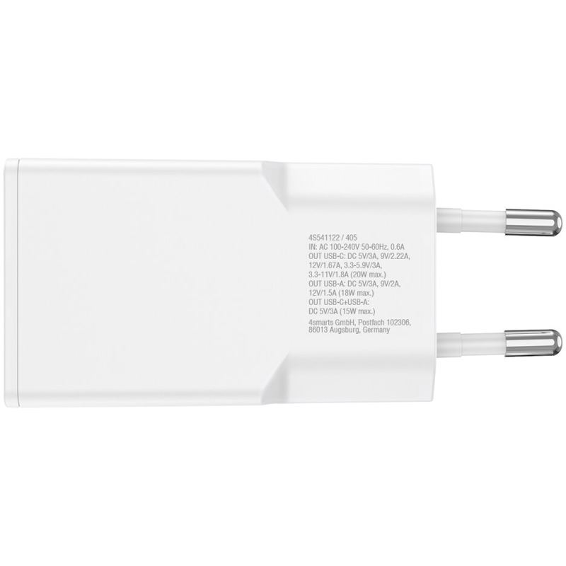 4smarts 541509. Aufladetyp: Drinnen, Energiequelle: AC, Aufladekompatibilität: Universal. Eingangsspannung: 100 - 240 V. Anzahl USB 2.0 Anschlüsse: 1, USB Typ-C Anzahl Anschlüsse: 1, Schnellladung, Energieschutzeigenschaften: Batterieentladung, Überspannung, Überlast, Kurzschluß. Kabellänge: 1,5 m, Produktfarbe: Weiß