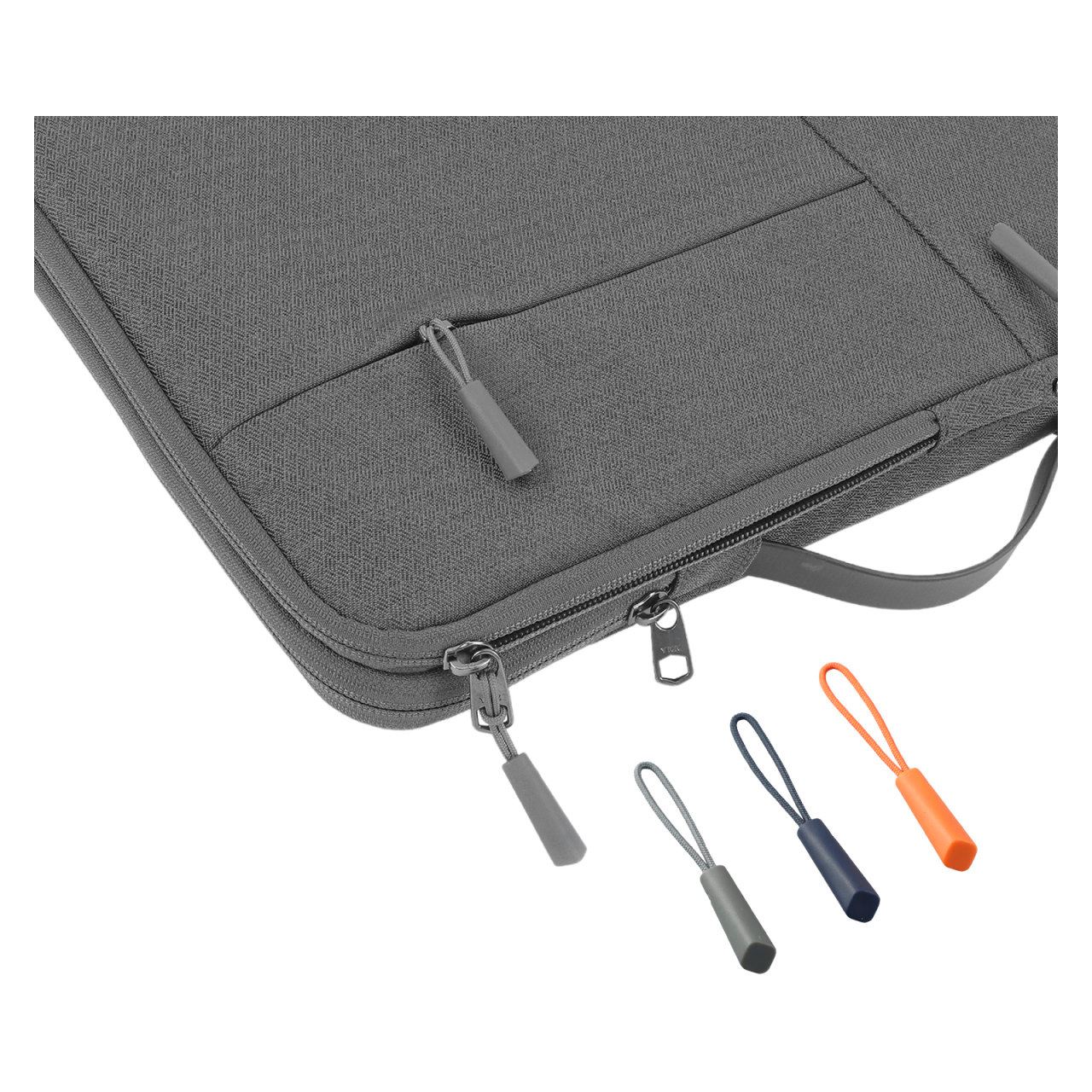 Die erstklassige Materialqualität dieser Laptoptasche zeichnet sich aus. Hergestellt aus spritzwassergeschützten Stoffen, bietet sie optimalen Schutz vor Nässe und Witterungseinflüssen. Dein Laptop bleibt trocken und bestens geschützt, unabhängig vom Wetter. Die hochwertigen YKK-Reißverschlüsse bedeuten Langlebigkeit und zuverlässige Funktionalität. Darüber hinaus sorgen die austauschbaren Schlaufe für komfortables und sicheres Handling. Zusätzlich bekommst du jeweils noch eine graue, eine blaue und eine orangene Schlaufen separat dazu.