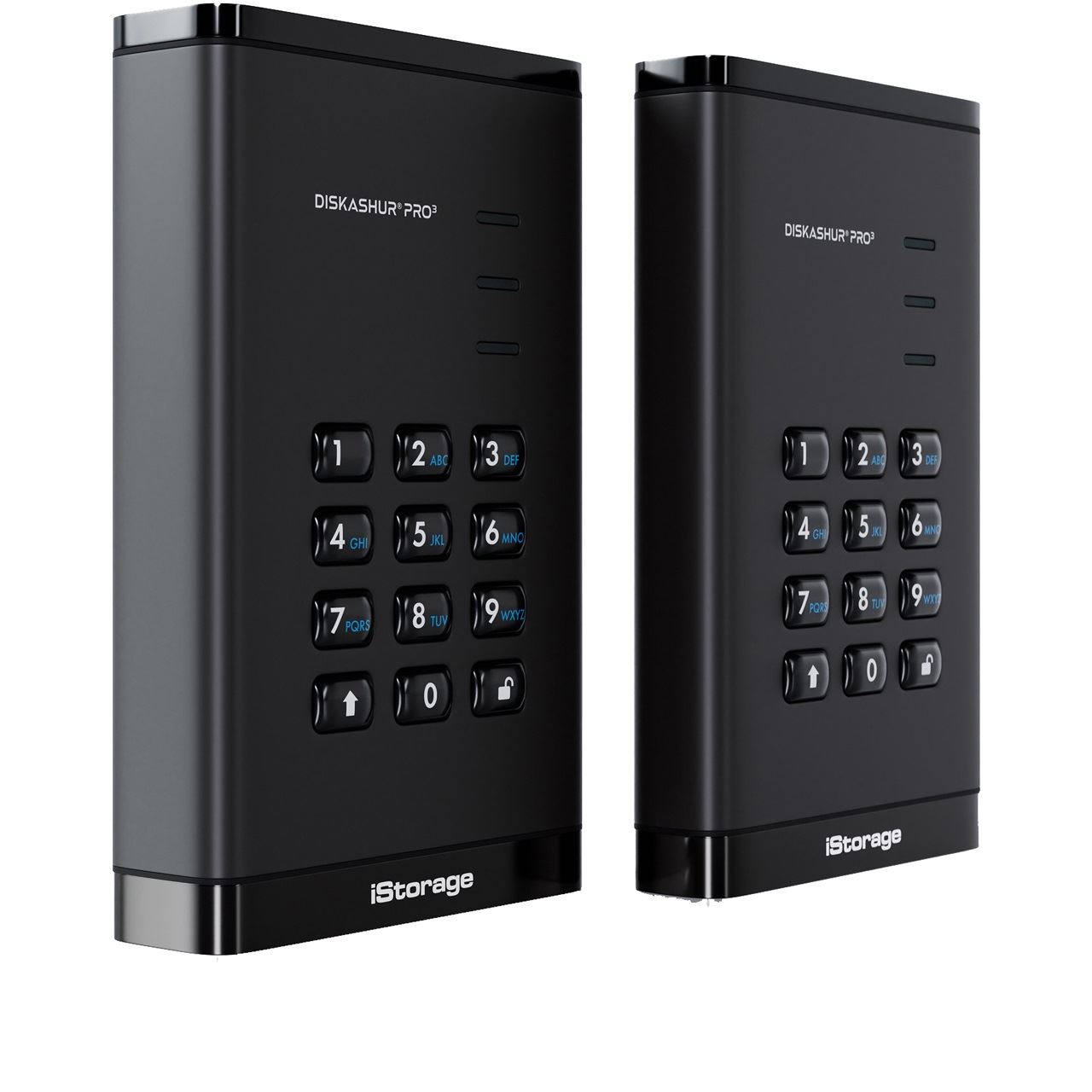 Wir stellen die iStorage disk vorAshur PRO3 - eine hochmoderne tragbare HDD/SSD, die einen neuen Maßstab für mühelose Datensicherheit setzt. Mit seinem schlanken Design und der benutzerfreundlichen Oberfläche bietet dieses brandneue Gerät einen beispiellosen Schutz für Ihre Daten. Der diskAshur PRO3 wurde sorgfältig entwickelt, um verbesserte Portabilität und Sicherheit zu bieten, und enthält neben zahlreichen innovativen technologischen Fortschritten alle wesentlichen Funktionen anderer iStorage-Produkte, wie z. B. PIN-Schutz und Hardwareverschlüsselung. Das TAA-konforme Laufwerk ist mit Kapazitäten von bis zu 16 TB erhältlich und definiert den Standard für die einfache und zuverlässige Sicherung von Daten neu.