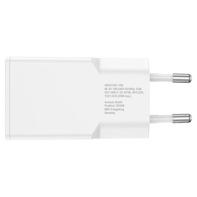 4smarts PDPlug Slim. Aufladetyp: Drinnen, Energiequelle: AC, Aufladekompatibilität: Smartphone, Tablets. Eingangsspannung: 100 - 240 V. USB Typ-C Anzahl Anschlüsse: 1, Schnellladung. Kabellänge: 1,5 m, Produktfarbe: Weiß