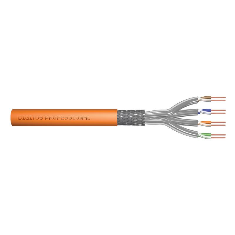 Das Digitus Cat 7 Verlegekabel ist für den Einsatz im strukturierten Rechenzentrum und der Gebäudeverkabelung gemäß ISO/IEC 11801, DIN EN 50288-4-1, DIN EN 50173, IEC 60332-3-24, EN 50575 konzipiert. Das Kabel ist hervorragend für die Übertragung von analogen und digitalen Daten geeignet und unterstützt PoE, PoE+, 4PPoE (IEEE 802.3af;3at;3bt). Der Schirmaufbau setzt sich aus einzelgeschirmten Paaren mit einem verzinnten Kupfergeflecht zusammen, die exzellente Schirmung und elektrische Werte gewährleistet.