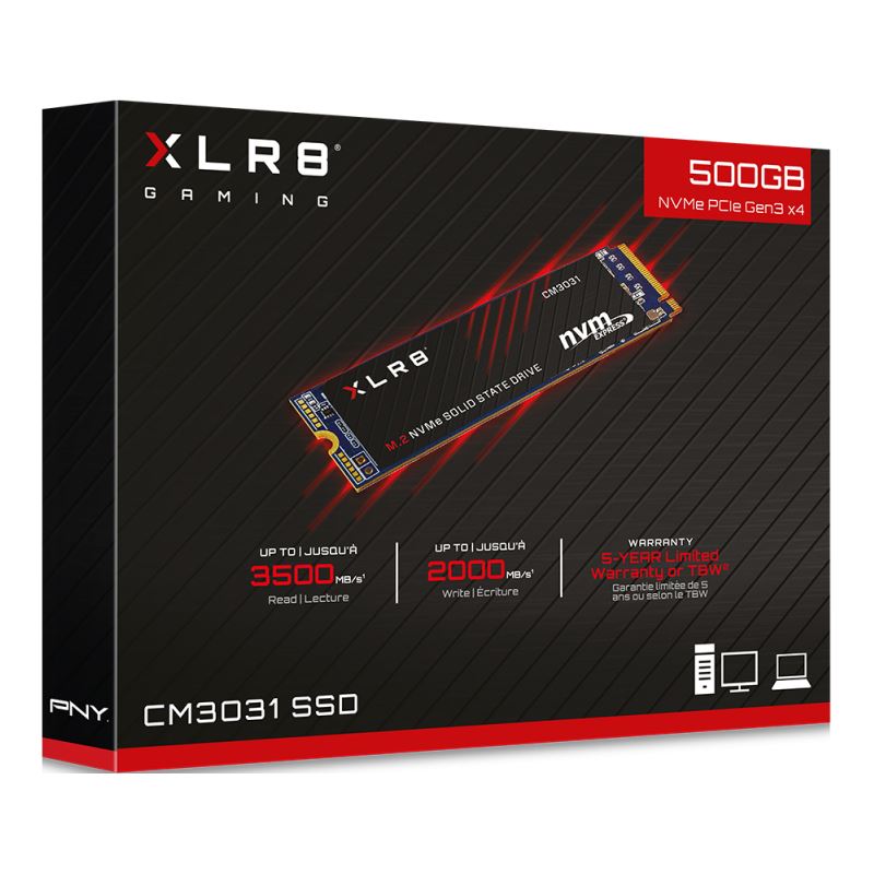PNY XLR8 CM3031. SSD Speicherkapazität: 500 GB, SSD-Formfaktor: M.2, Lesegeschwindigkeit: 3500 MB/s, Schreibgeschwindigkeit: 2000 MB/s, Komponente für: PC/Laptop