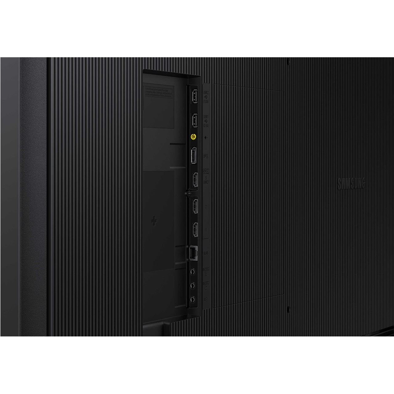 Die VESA-Löcher auf der Rückseite des Displays sind zentral positioniert und sorgen so dafür, dass das Gewicht gleichmäßig verteilt ist – für eine sichere Montage. Da sich die VESA-Löcher in der Mitte befinden kann das Display sorgenfrei im Hochformat angebracht werden, ohne dass es unbeabsichtigt kippt.