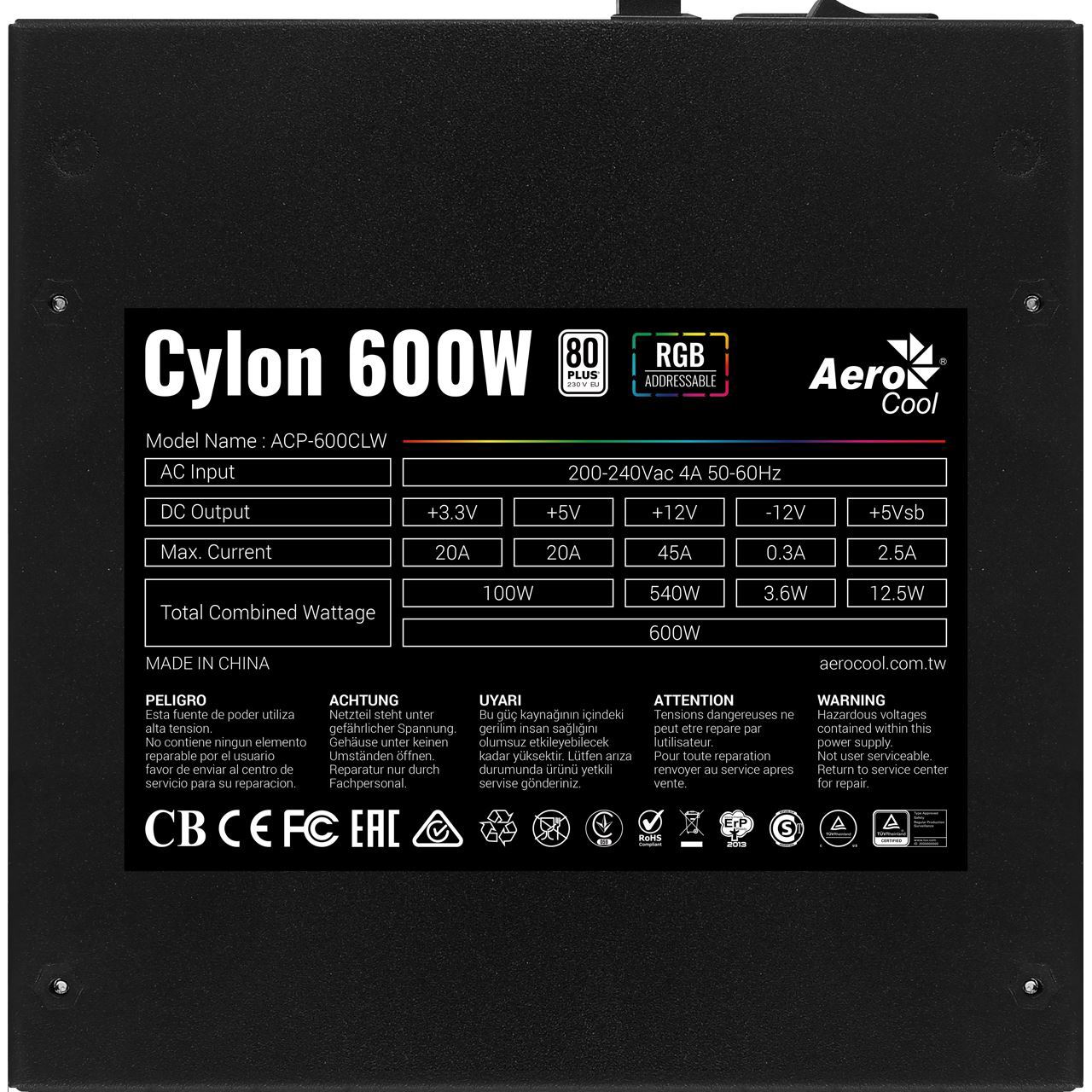 Mit seinem eleganten Backslash-RGB-LED-Design verbessert das Cylon-Netzteil das Erscheinungsbild Ihres Gaming-Setups und versorgt Ihr System gleichzeitig effizient mit Strom. Erwecken Sie Ihr System mit 13 einzigartigen Lichteffekten zum Leben, die über die LED-Steuerungstaste gesteuert werden können. Kompatibel mit adressierbaren RGB-Mainboards mit +5V adressierbarem RGB-Anschluss.