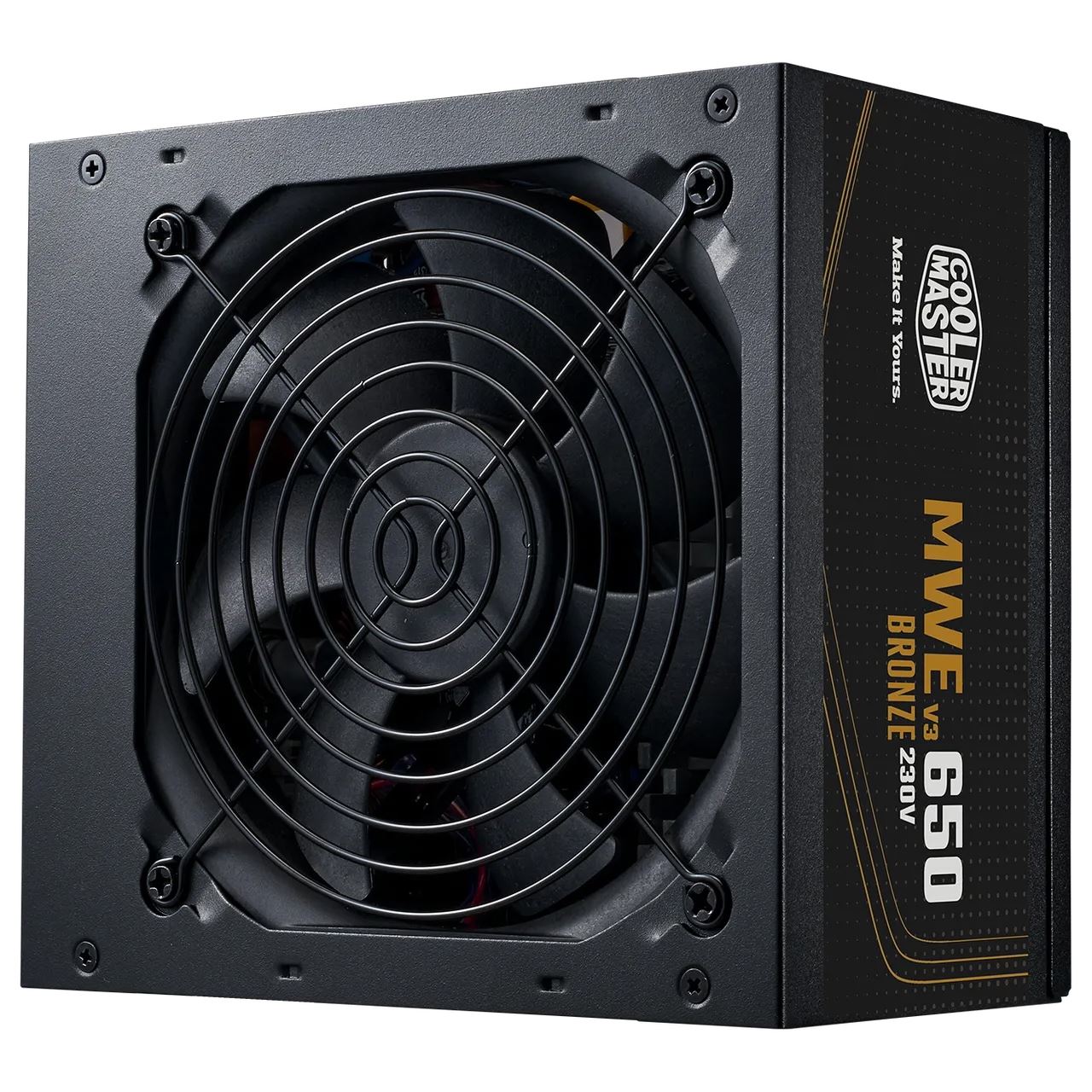 Cooler Master MWE Bronze 650 V3 230V. Gesamtleistung: 650 W, AC Eingangsspannung: 200 - 240 V, AC Eingangsfrequenz: 50/60 Hz. Motherboard Anschlussstecker: 24-pin ATX, Stromkabellänge Motherboard: 50 cm, SATA-Netzkabellänge: 400,550,700 mm. Zweck: PC / Server, Stromversorgungseinheit (PSU) Formfaktor: ATX, 80 Plus Zertifizierung: 80 PLUS Bronze. Produktfarbe: Schwarz, Kühlung: Aktiv, Lüfterdurchmesser: 12 cm. Konformitätsbescheinigungen: BIS, CE, China Compulsory Certification (CCC), EAC, Eidgenössische Kommunikationskommission..., Zertifizierung: ErP 2014 Lot 3