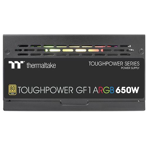 Thermaltake PS-TPD-0650F3FAGE-1. Gesamtleistung: 650 W, AC Eingangsspannung: 100 - 240 V, Spitzenstrom: 780 W. Motherboard Anschlussstecker: 20-pin ATX, Stromkabellänge Motherboard: 65 cm, SATA-Netzkabellänge: 150,500 mm. Zweck: PC, Stromversorgungseinheit (PSU) Formfaktor: ATX, 80 Plus Zertifizierung: 80 PLUS Gold. Produktfarbe: Schwarz, Anzahl Lüfter: 1 Lüfter. Breite: 150 mm, Tiefe: 160 mm, Höhe: 86 mm
