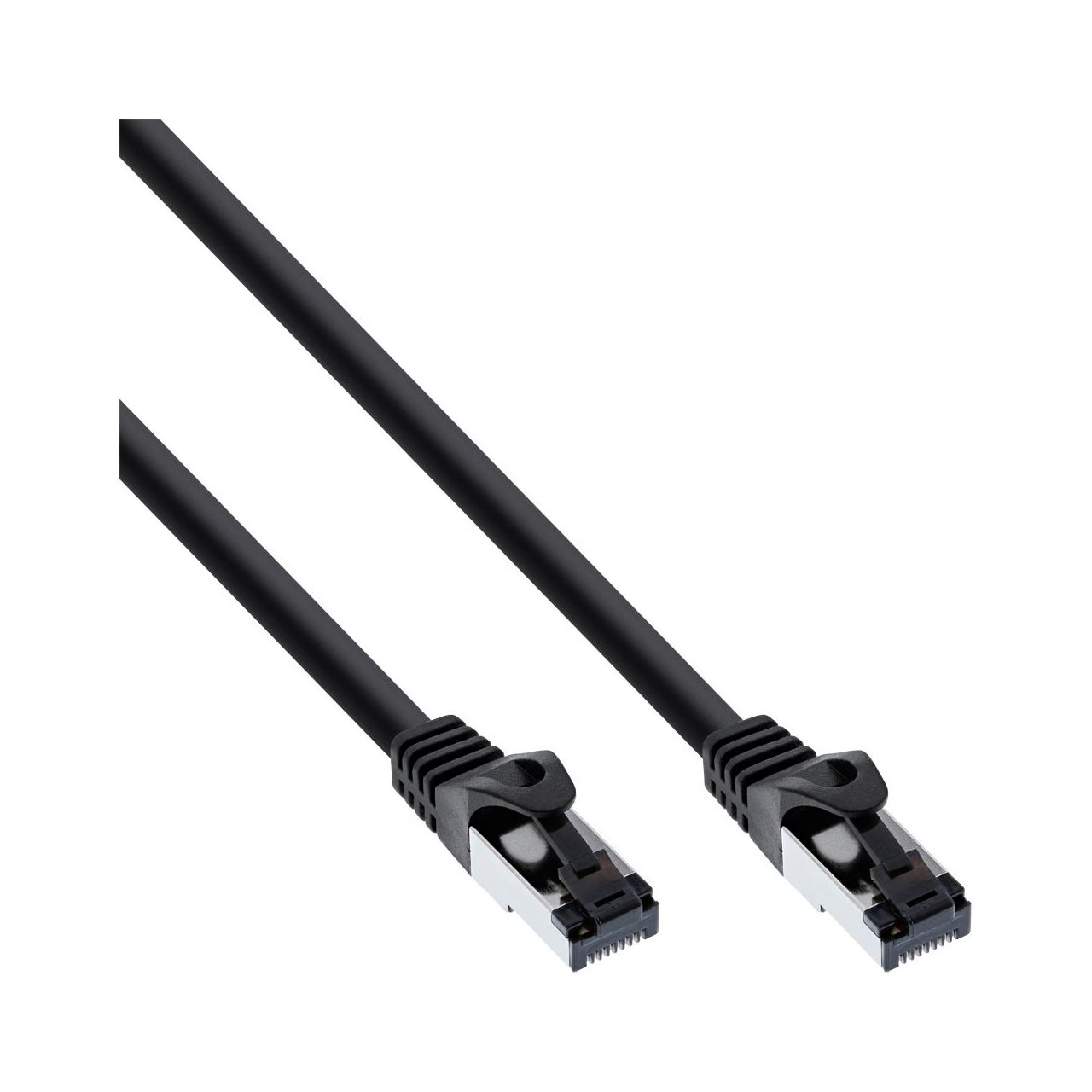 Cat.8.1 Netzwerk-Patchkabel, Rundkabel, bis 40Gb/s kompatibelS/FTP PiMFStecker schwarz Kontakte vergoldet 50µ"26AWG Leiter: KupferAL-MG GeflechtPinbelegung nach T568BMantel: LSZHISO/IEC 11801 Klasse I 2000MhzEIA/TIA 568-C Fluke Channel Test ISO 11801 Kanal Klasse IIEC60754-2 IEC61034 Unterstützt PoE nach IEEE 802.3af, PoE+ nach IEEE 802.3atLebensdauer der Steckerkontakte: 750 Zyklen min.Betriebstemperatur: -10 ~+60°C